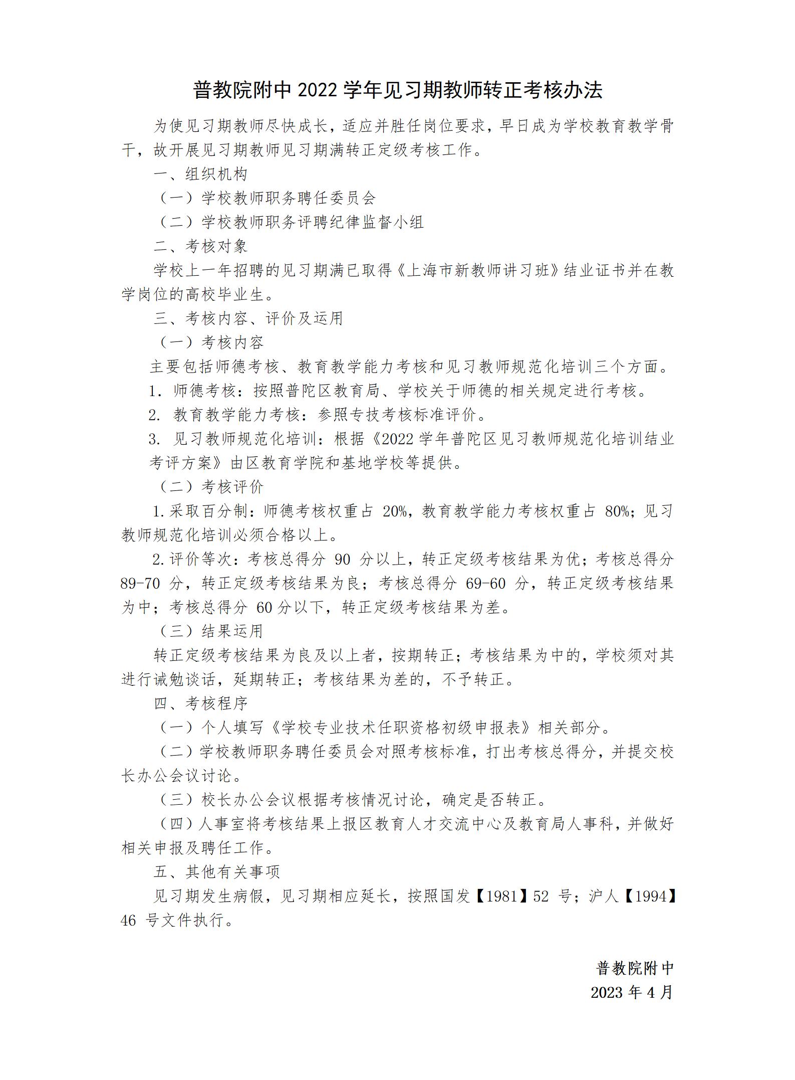 普教院附中2022学年见习期教师转正考核办法_